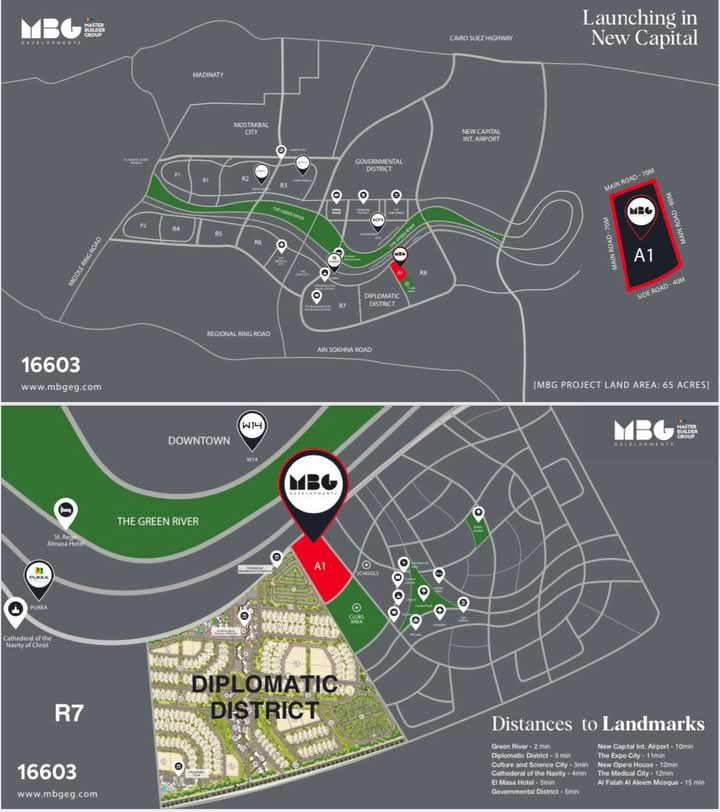 حول مزايا قطعة الأرض الجديدة التى حصلت عليها شركة MBG للتطوير العقاري، يوضح الدكتور محمود العدل قائلا” قطعة الأرض A1 مساحتها 65فدان تقع علي 4 محاور رئيسية ، وتطل على الحى الدبلوماسى، حى السفارات بالعاصمة الإدارية الجديدة، مباشرة، ويعد أرقي أحياء العاصمة الإدارية، والذي يتضمن أكثر من 200 سفارة وقنصلية لمختلف دول العالم، كما تطل على الأحياء السكنية للسفارات والجالية الدبلوماسية ومبنى الأمم المتحدة، وبإطلالة مميزة على المحور المركزى.