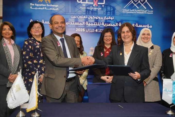 وقع السيد/ أحمد الشيخ – رئيس مجلس أمناء مؤسسة البورصة المصرية للتنمية المستدامة (الذراع المجتمعي للبورصة المصرية) والسيدة/ ليلى سالم – عضو مجلس أمناء مؤسسة بهية للاكتشاف المبكر وعلاج سرطان الثدي، بحضور السيدة/ هبة الصيرفي – نائب رئيس مجلس أمناء مؤسسة البورصة المصرية للتنمية المستدامة، بروتوكول تعاون بين المؤسستين وذلك يوم الثلاثاء، الموافق 4-فبراير-2025.