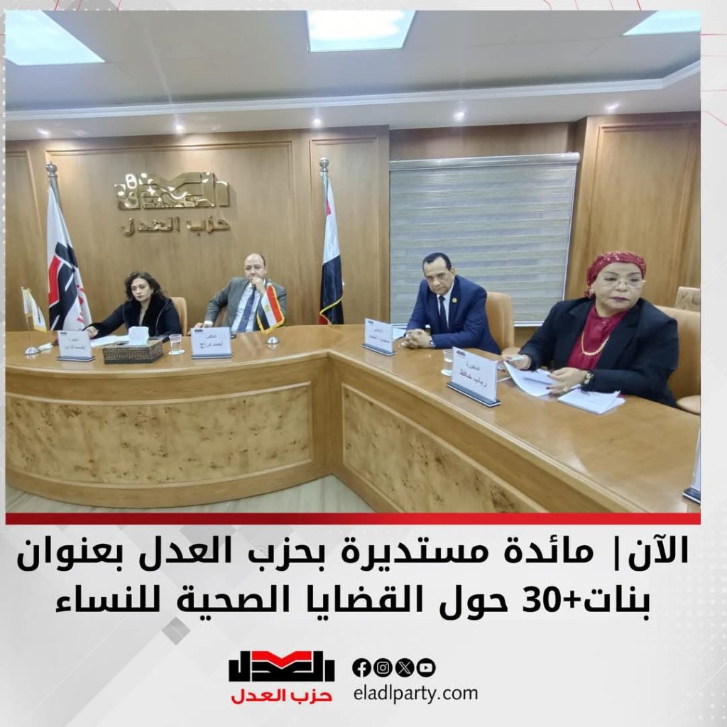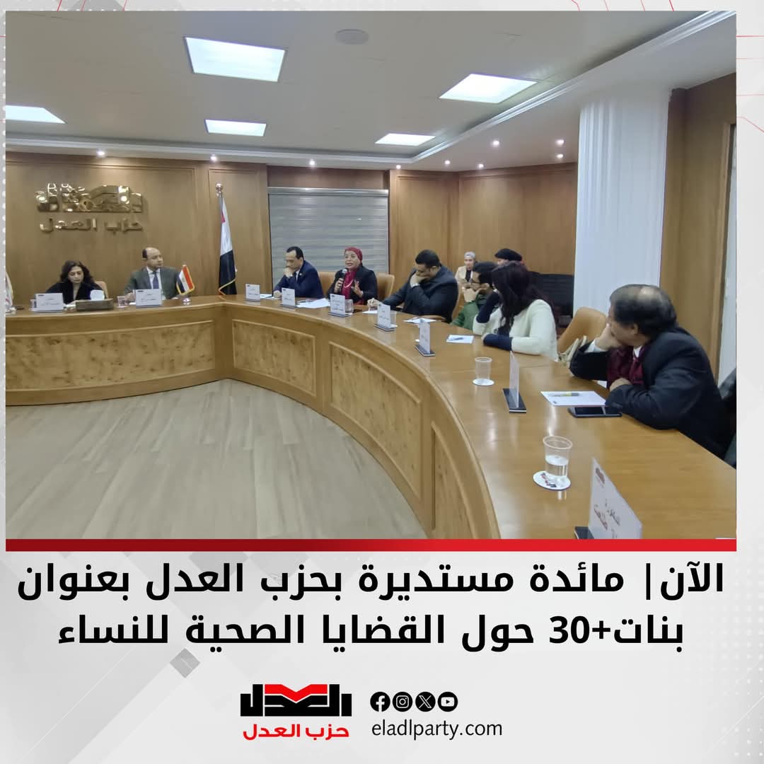 نظم حزب العدل مائدة مستديرة تحت عنوان “بنات فوق التلاتين”، لمناقشة صحة المرأة من منظور اجتماعي وقانوني، وذلك في إطار اهتمام الحزب بقضايا المرأة وحقوقها الصحية، والتحديات التي تواجهها في ظل العرف والقانون.
