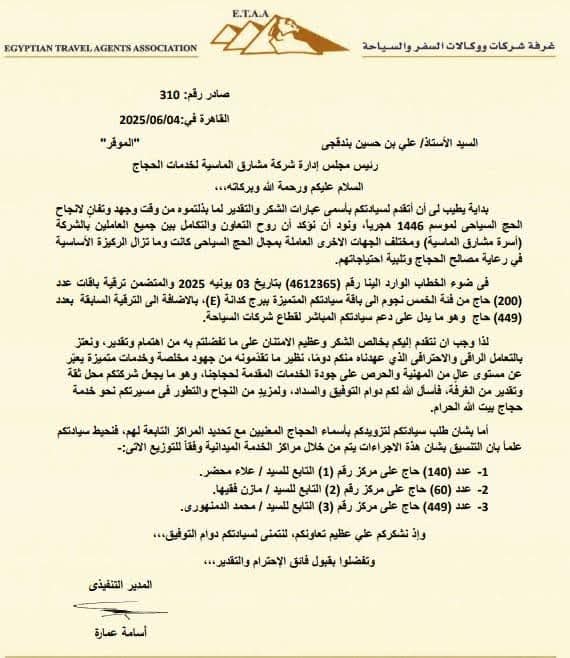 وفي ختام الخطاب، تمنت الغرفة للشركة دوام التوفيق والنجاح، مشيدة بما وصفته بـ”النموذج المشرف” في تقديم الخدمة، و”الشريك الموثوق” في موسم الحج السياحي.