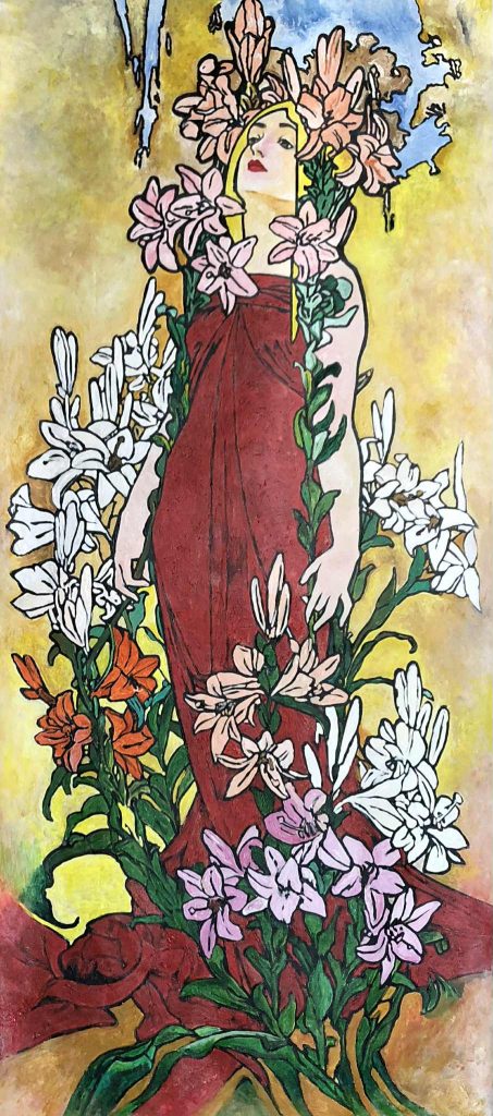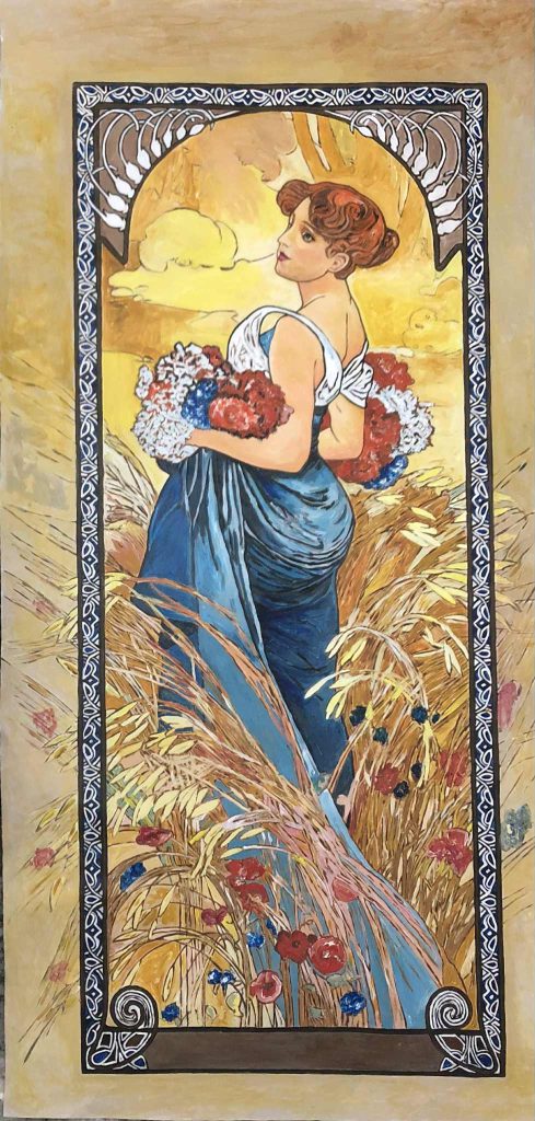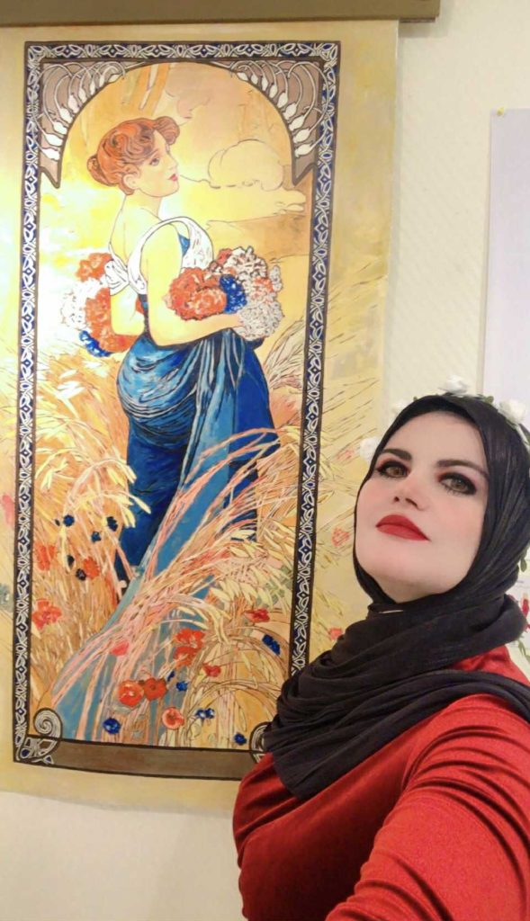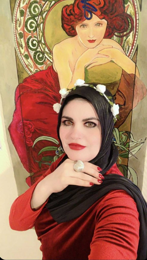 إستضفتها منذ سنوات عديدة في ندوة بحرم إحدى القنوات الفضائية الشهيرة، أشعت فكراً ونضجاً كمحاربة من زمن المخلصين، أسلحتها الفرشاة واللون، كم ناضلت من أجل الأجيال القادمة بأبحاثها الفنية ورسائلها العلمية في مجال تنمية الطفل بالفن، كم أنفقت من محبتها بسخاء، خاصة لمصلحة ذوي الإحتياجات الخاصة من الأطفال، تحمل بين ضلوعها قلباً ينبض من أجل الآخرين ويضخ إبداعاً نقياً في أوردة الأروقة الثقافية ، زرت آخر معابدها متعطشاً لتعويذة فنية تنقذني من السموم التي أتجرعها طوال الوقت، من فن هابط، وتجارة فاسدة، يروج لها نخاسو الفكر المتنطعون والمدعون، أشرقت لوحاتها على جدران أكاديمية الفنون بالجيزة، وسألتها في شوق : (ماذا لديك لي يادكتورة من أدوات الإنعاش ؟) فحدثتني عن فكرة أحدث معارضها والذي فككت فيه رسومات أحد عظماء فن الرسم التعبيري للطفل وهو الفنان (ألفونسو موتشا) لتغوص بآفاق حديثي العمر إلى أبعد مما ذهب إليه الفنان الأصلي بلوحاته ،