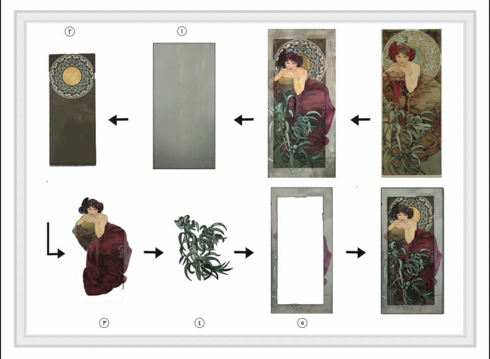 فكانت الوجهة والهدف أن يتخيل الطفل كيف بنيت وتشكلت خطوط اللوحة من الخلفية إلى المقدمة، فرسمت الدكتورة (رانيا) لكل لوحة مكوناتها المنفردة لكي يراها الطفل كعناصر منفصلة ثم تتجمع أمام عينيه مشهداً كاملاً في لوحة أخرى أخيرة أزهى لونياً أيضاً من لوحات (موتشا) أملاً في لفت نظر أعين الأطفال وإدراكاً لرغباتهم في الرؤية ،