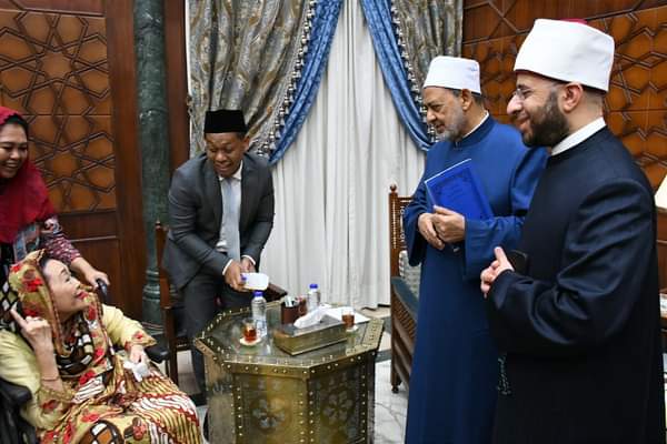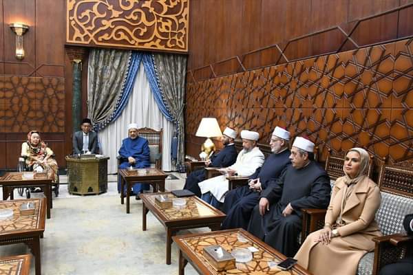 استقبل فضيلة الإمام الأكبر الأستاذ الدكتور أحمد الطيب شيخ الأزهر بمقر المشيخة اليوم معالي الأستاذ الدكتور أسامة الأزهري وزير الأوقاف والسيدة سنتا نوريا عبد الرحمن ضيف شرف المؤتمر حرم الرئيس الإندونيسي الأسبق،
