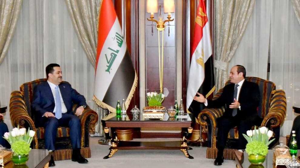 استقبل الرئيس عبد الفتاح السيسي،رئيس الوزراء العراقي “محمد شياع السوداني”، الذي يقوم بزيارة رسمية لمصر، على رأس وفد حكومي عراقي رفيع المستوى، يضم نائب رئيس الوزراء وزير الخارجية، ووزير التجارة، وعدد من كبار المسئولين العراقيين، وذلك بحضور الدكتور مصطفى مدبولي رئيس مجلس الوزراء، ووزراء الخارجية، والإسكان، والاستثمار، والبترول، من الجانب المصري.