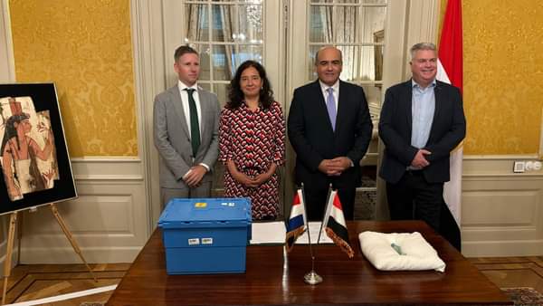 بدعم وتنسيق بين وزارة الخارجية ووزارة السياحة والآثار، تسلمت سفارة جمهورية مصر العربية في لاهاي من السلطات الهولندية المعنية ثلاث قطع أثرية مصرية قديمة، حيث عقدت مراسم التسليم في مقر السفارة في حضور مسئولي وزارتي الخارجية والعلوم والثقافة الهولنديتين، علاوةً على مسئولي جهاز التفتيش على التراث الثقافي ووحدة الجرائم الثقافية في الشرطة الهولندية، وشهدت المراسم توقيع السيد السفير/ حاتم عبد القادر، سفير جمهورية مصر العربية لدى مملكة هولندا، مستندات تسلم القطع تمهيداً لسرعة نقلها إلى مصر.