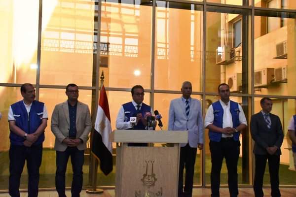 عقد الدكتور خالد عبدالغفار نائب رئيس مجلس الوزراء ووزير الصحة والسكان، مؤتمرا صحفيا، بحضور المهندس شريف الشربيني وزير الإسكان، واللواء إسماعيل كمال محافظ أسوان، من مستشفى الصداقة بمحافظة أسوان، للإعلان عن نتيحة تحليل المعامل المركزية لوزارة الصحة، وكشف حقيقة ما تم تداوله مؤخرا بشأن الحالات المرضية في المحافظة، وذلك بحضور المهندس شريف الشربيني وزير الإسكان، واللواء إسماعيل كمال محافظ أسوان، عقب تفقد عدد من مستشفيات المحافظة،.