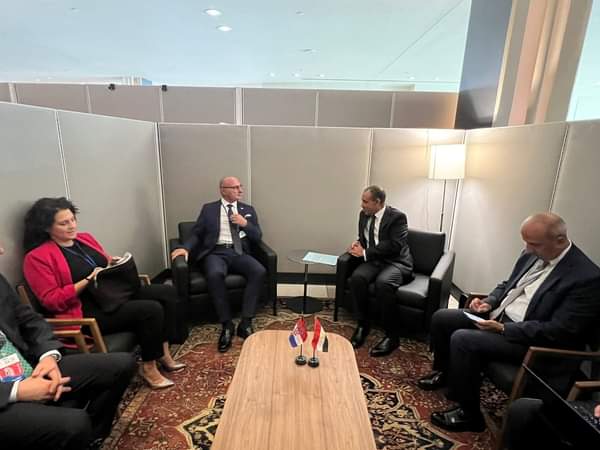 التقى السيد د. بدر عبد العاطي وزير الخارجية والهجرة مع الدكتور Gordan Grlić Radman وزير الشئون الخارجية والأوروبية بجمهورية كرواتيا يوم ٢٣ سبتمبر على هامش أعمال الجمعية العامة للأمم المتحدة بنيويورك.