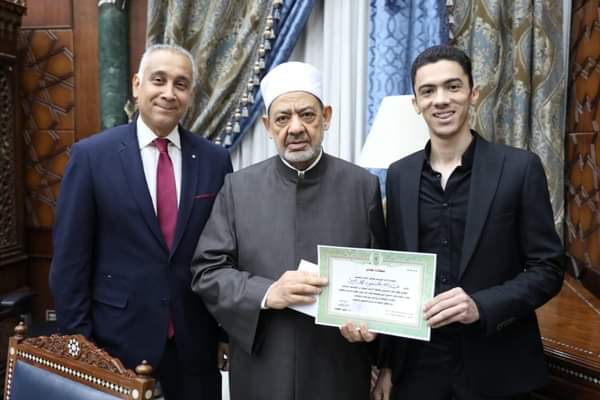 وأشاد فضيلة الإمام الأكبر بمستوى الطلاب وتميزهم وحصولهم على مراكز متقدمة في المسابقة، داعيًا جميع طلاب الأزهر إلى المشاركة في المسابقات الدولية وإظهار مواهبهم وقدراتهم وقوة مناهج الأزهر ومنظومته الأخلاقية والتعليمية، وبيان أن طلاب الأزهر متميزون في جميع المجالات، وليس في المجالات الدينية فحسب، راجيًا لهم ولجميع الطلاب التوفيق والنجاح.