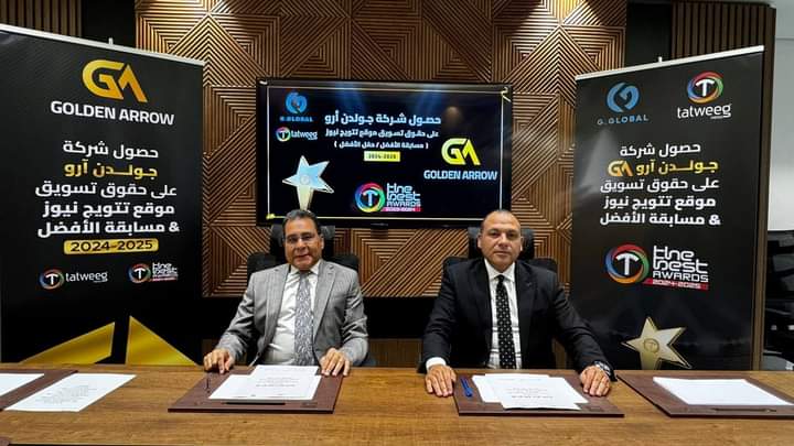 تم توقيع عقد شراكة بين شركة جولدن أرو “golden arrow ” الإماراتيه وتتويج نيوز المصرية وذلك لتسويق موقع تتويج نيوز ومسابقة الأفضل في نسختها الخامسة .