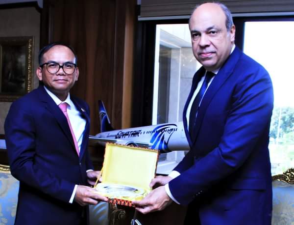 وزير الطيران المدني يلتقي بسفير كمبوديا بالقاهرة لدراسة إمكانية توقيع اتفاقية نقل جوي بين البلدين لتفعيل أوجه التعاون الثنائي في مجال الطيران المدني.