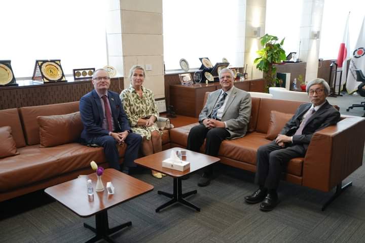 استقبل الدكتور عمرو عدلي، رئيس الجامعة المصرية اليابانية للعلوم والتكنولوجيا (E-JUST)، السفير إيفان يوكي سفير جمهورية التشيك لدى القاهرة ، والسيدة دانييلا يوكلوفا، وقد رافقهم خلال الزيارة عدد من العمداء والأكاديميين وذلك بحضور الدكتور هاشيموتو شوغي، نائب رئيس الجامعة للشئون الإقليمية والدولية، و الدكتور سامح ندا، نائب رئيس الجامعة للشئون الأكاديمية والتعليم .