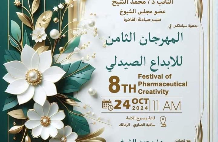 أقيم المهرجان يوم الخميس الموافق ١٠/٢٤ /٢٠٢٤ بساقية الصاوى بالزمالك وقد شاركت بالحضور والمشاركة والتكريم من قبل لجنة الثقافة الإبداع الصيدلي