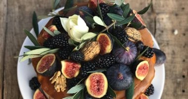 بعد أن يبرد الكيك تمامًا، يمكنك تزيينه بشرائح التين.